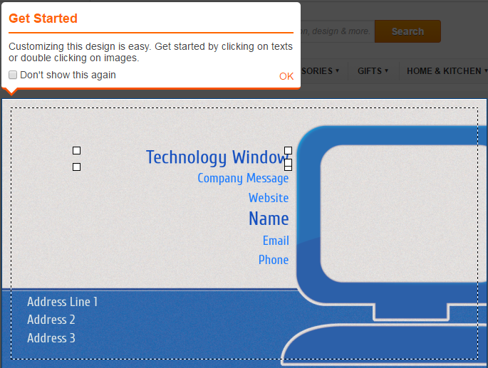 Step 3: Customize the card by entering your details. To enter your details, click on the different fields of the card. Replace the default text with your company details such as company name, website, your name, contact details etc.
