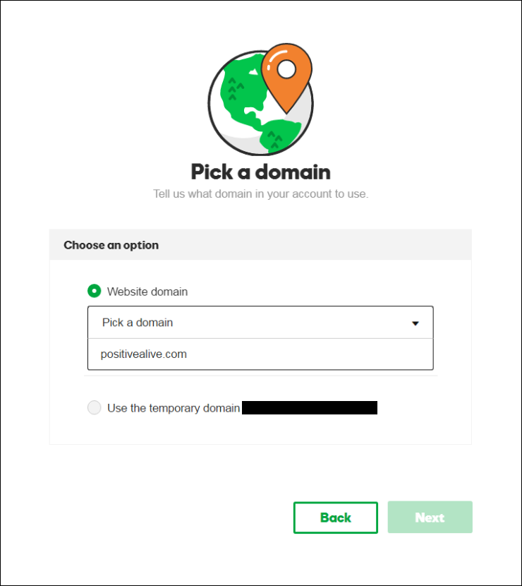 Step 6: Pick a domain name. You can either use a free domain or any other domain that you have purchased with GoDaddy. You also get an option for temporary domain here.