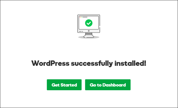 Step 9: Click on “Get Started” once installing is done. You can either go to dashboard or setup few WordPress settings in the next steps.