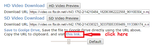 Like Tampermonkey, it also gives both mp4 HD and SD options. However, you can only download public videos and not the one which are shared with only friends. This app also allows you to save video to your Google Drive. Grab the URL of any of the two versions that you want to save and click on the link shown in the image below.