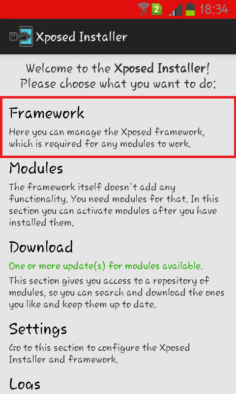 Step 4: Open Xposed Installer and click on Framework.