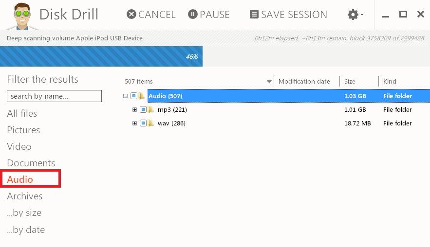 Step 5: Let the software recover files from the iPod. Go to Audio section to check what is being recovered.