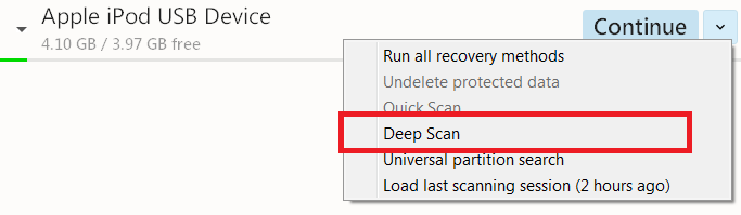 Step 4: Choose Deep Scan from the options against your iPod drive.