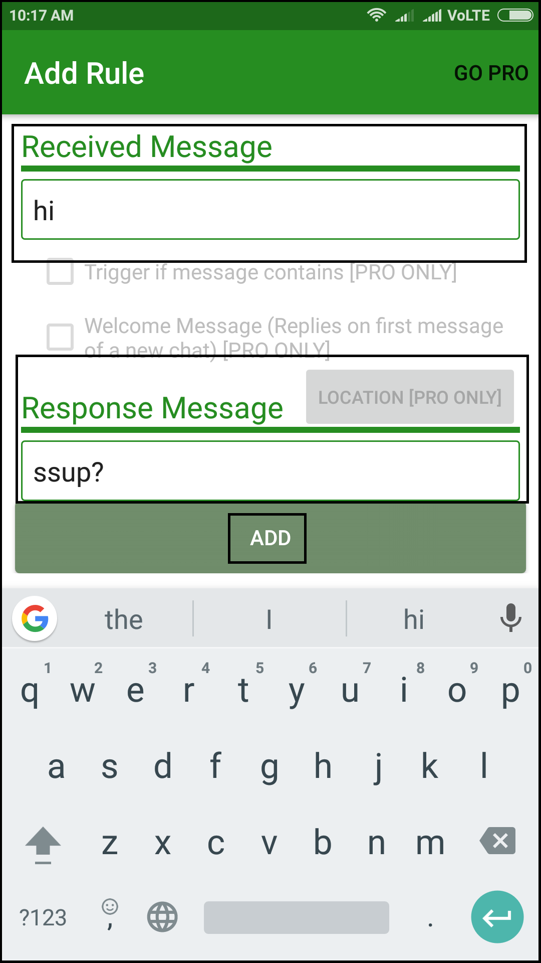 Once you add the rule as above, anyone sending you “hi” on WhatsApp will get an instant reply as “ssup?”. This all without you having to open the app.