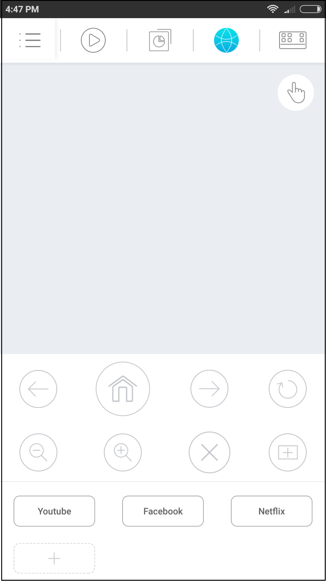 The next option has many browser controllers. You can open the homepage and popular websites like Facebook, YouTube and Netflix in your default browser. It has also a support for browser back, forward, reload and net tab options. So it can come handy if you want to control browser on your PC with the Android phone.