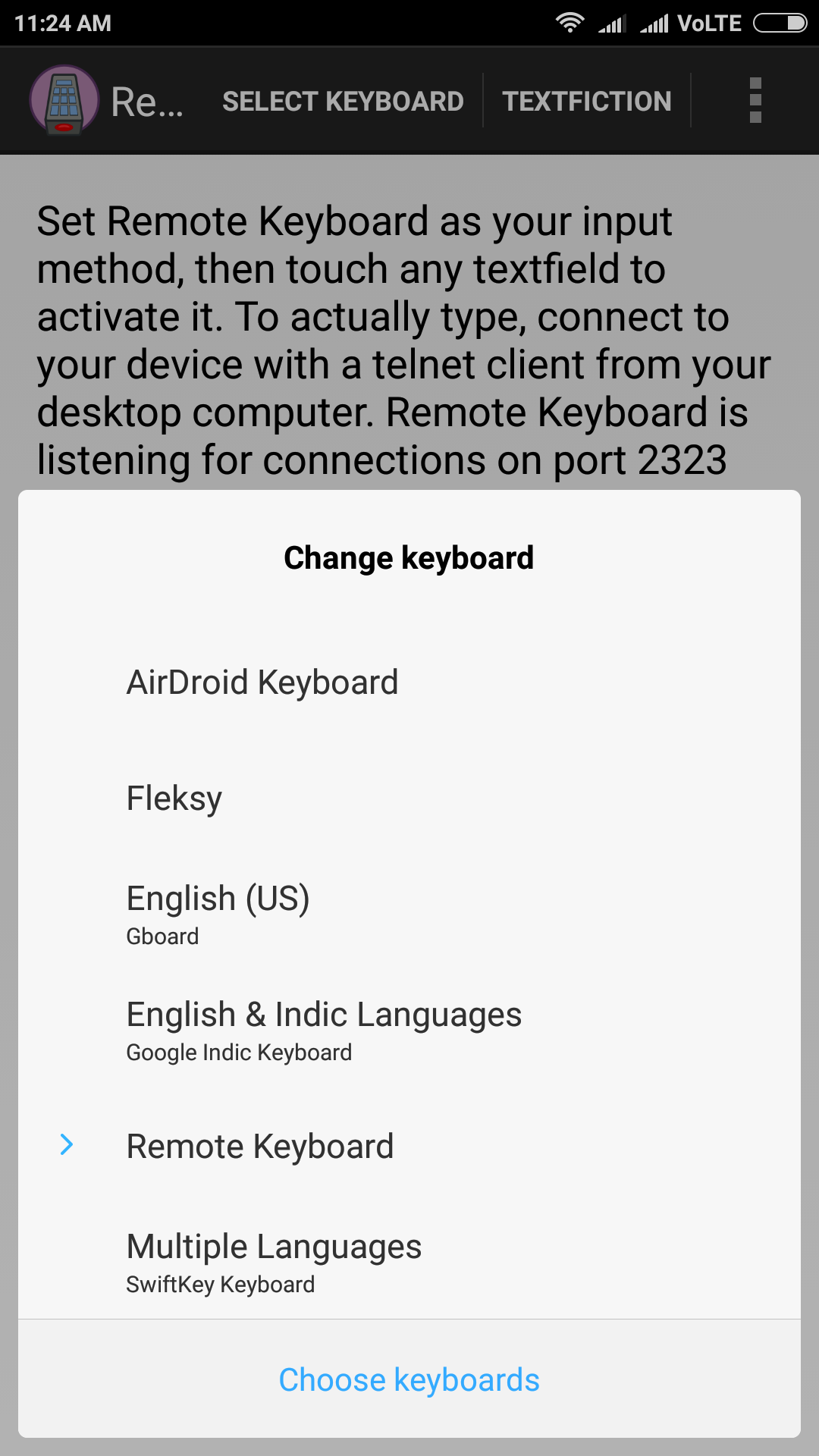 Step 1: Open the Remote Keyboard app as above and select the keyboard.